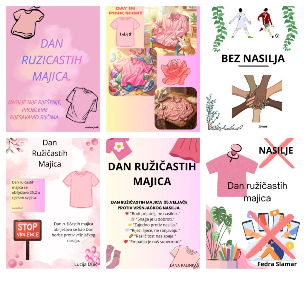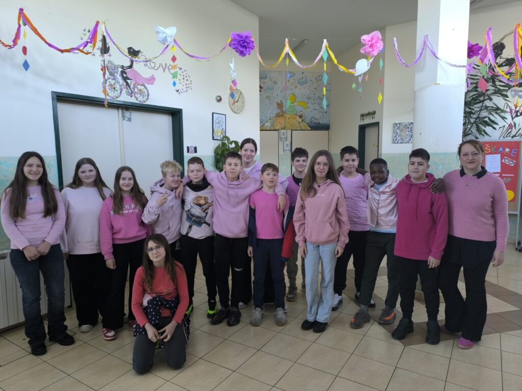 Naizgled dan kao svaki drugi, ali ipak poseban po mnogočemu. Učenici su u školu došli u ružičastim majicama podižući svijest o vršnjačkom nasilju. Ružičasta je boja simbol podrške djeci izloženoj nasilju. Nasilje među djecom i mladima sve je prisutnije, kako u školi, tako i izvan nje. Nitko ne bi smio biti izložen ismijavanju te fizičkom ili psihičkom nasilju. Na nastavnom satu, učenici 6.b razreda sa svojom su razrednicom putem radionica učili prepoznati nasilje, razumjeti ulogu počinitelja, žrtve i promatrača. Radionice su održali razrednici i u ostalim razredima što možete vidjeti na slikama. Cilj je razviti empatiju te osvijestiti poruku o tome da smo kao pojedinci posebni, svatko na svoj način. Različitosti nas čine jedinstvenima i njih trebamo prihvatiti kao prednost, a ne manu.