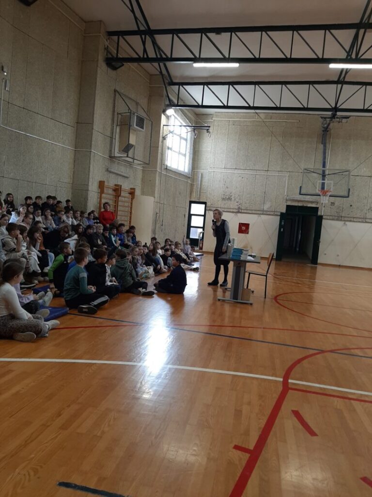 U četvrtak 19.3. održan je književni susret za niže razrede s poznatom književnicom Nadom Mihaljević. Susretu su prisustvovali i učenici 6.a razreda sa svojom učiteljicom budući da su u svojem programu za cjelovito čitanje imali knjigu Anđeo plišanih igračaka. Za ovo djelo je književnica dobila prestižnu književnu Nagradu „Grigor Vitez“.